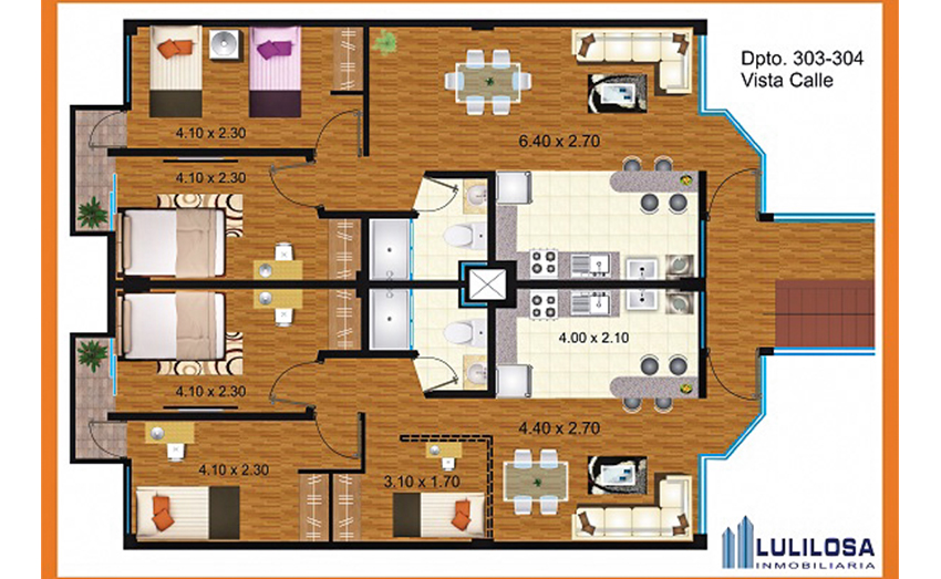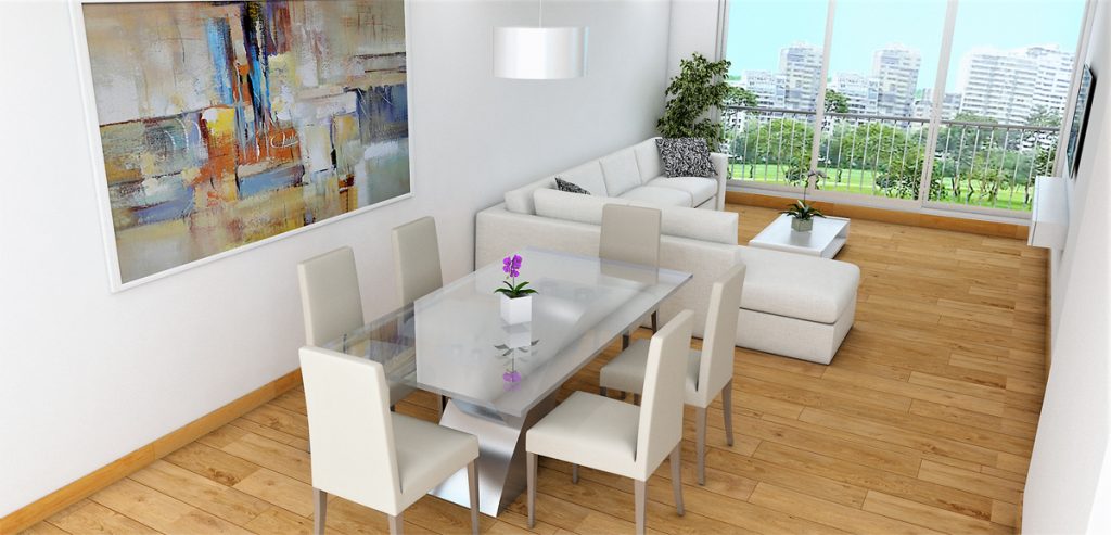 Area Ocupada: 71 m2. Distribución : Sala- comedor amplio e iluminado, 2 terrazas, Kitchenette moderno, convirtiéndola en un ambiente de reunión donde disfrutar y compartir, la kitchenette cuenta con la clásica barra americana que le proporciona un toque de modernidad, 2 Dormitorios amplios (más la opción de un 3ero ), closets completos, baño moderno, zona de lavandería, medidor de agua y sistema de gas independiente.